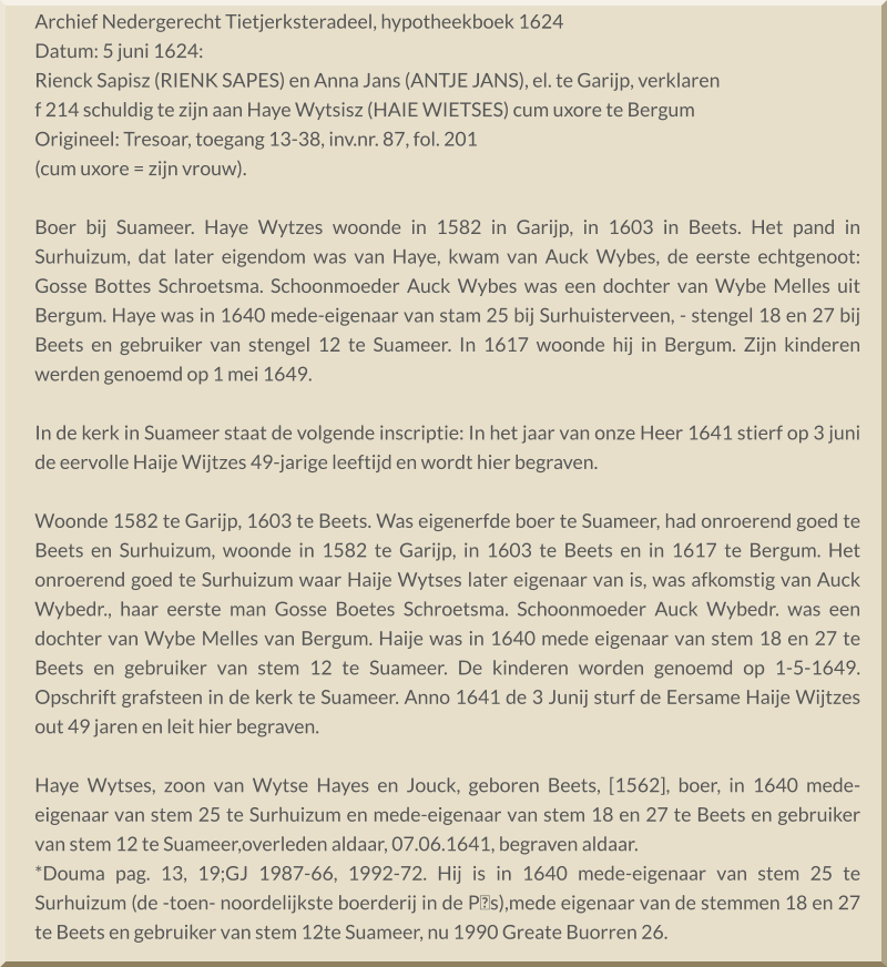 1.1. Wijtthie Haijes, geboren in 1529 in Beets.