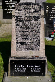 1HedzerKeimpesvanderKooiisgeborenop22april1802inSijbrandahuis,zoonvanKeimpeHedzersvanderKooienHiltjeTjeerdsStraatsma.Hijisgedooptop7juni1802inSijbrandahuis. Hedzerisoverledenop20maart1877inOostrum,74jaaroud.Hedzertrouwde,35jaaroud,op30mei1837inOostdongeradeelmetJantjeGerritsBosch,20jaaroud.Jantjeisgeborenop19 september 1816 in Reitsum, dochter van Gerrit Lieuwes Bosch en Antje Jans de Roos. Jantje is overleden op 2 maart 1880 in Oostrum, 63 jaar oud. Kinderen van Hedzer en Jantje:1.1.Antje(Hedzers)vanderKooiisgeborenop11maart1838inOostrum,dochtervanHedzerKeimpesvanderKooi(1)enJantjeGerritsBosch.Antjeisoverledenop2september1902in Blija,64jaaroud.Antjetrouwde,23jaaroud,op18mei1861inOostdongeradeelmetJanTjiskesBoersma,26jaaroud.Janisgeborenop17oktober1834inOostrum,zoonvanTjiske Sjoerds Boersma en Trijntje Jans Crans. Jan is overleden op 27 juni 1900 in Blija, 65 jaar oud. Kinderen van Antje en Jan: 1.2.KeimpevanderKooiisgeborenop24november1839inOostrum,zoonvanHedzerKeimpesvanderKooi(1)enJantjeGerritsBosch. Keimpeisoverledenop14december1917inDennenoord,Zuidlaren,78jaaroud.Keimpe(1)trouwde,34jaaroud,op9mei1874in OostdongeradeelmetFokjeHalbertsma,37jaaroud.Fokjeisgeborenop23april1837inRaard,dochtervanJohannesHalbesHalbertsmaen Ytske Sydzes van Kleffens. Fokje is overleden op 9 juli 1883 in Rinsumageest, 46 jaar oud. Keimpe(2)trouwde,46jaaroud,op5mei1886inDantumadeelmetJohannaRindertsTalsma,39jaaroud.Johannaisgeborenop20april 1847 in Raard, dochter van Rindert Jans Talsma en Ytje Andries Vellinga. Johanna is overleden op 14 juli 1918 in Oenkerk, 71 jaar oud. Kind van Keimpe en Fokje:1.2.1.HedzervanderKooiisgeborenop25mei1878inSijbrandahuis,zoonvanKeimpevanderKooi(1.2)enFokjeHalbertsma. Hedzerisoverledenop18december1943inRinsumageest,65jaaroud.Hedzertrouwde,26jaaroud,op13mei1905in TietjerksteradeelmetLijsbertWillemsdeVries,24jaaroud.Lijsbertisgeborenop6april1881inGiekerk,dochtervanWillemFoppesdeVriesenAttjeKlazesdeBoer.Lijsbertis overleden op 1 juni 1970 in Dokkum, 89 jaar oud. Kinderen van Hedzer en Lijsbert:1.2.1.1. Attje van der Kooi, geboren op 16 maart 1908 in Akkerwoude. Attje is overleden op 26 juni 2004 in Veenwouden, 96 jaar oud. Attje bleef ongehuwd.1.2.1.2. Keimpe van der Kooi, geboren op 27 juli 1909 in Akkerwoude. Keimpe is overleden op 17 januari 1986 in Ede, 76 jaar oud. Keimpe bleef ongehuwd.1.2.1.3.WillemvanderKooiisgeborenop29augustus1911inAkkerwoude,zoonvanHedzervanderKooi(1.2.1)enLijsbertWillemsdeVries.Willemisoverledenop23 december1999inDamwoude,88jaaroud.Willemtrouwde,26jaaroud,op12mei1938inAchtkarspelenmetTrijntjeBijlsma,23jaaroud.Trijntjeisgeborenop5september 1914 in Harkema, dochter van Tjeerd Bijlsma en Tietje Hoogsteen. Trijntje is overleden op 13 maart 2004 in Veenwouden, 89 jaar oud. Kinderen van Willem en Trijntje:1.2.1.3.1. Tietje van der Kooi, geboren op 6 mei 1939 in Rinsumageest.1.2.1.3.2. Keimpe van der Kooi, geboren op 11 augustus 1947 in Rinsumageest.1.2.1.4.FokjevanderKooiisgeborenop13maart1918inAkkerwoude,dochtervanHedzervanderKooi(1.2.1)enLijsbertWillemsdeVries.Fokjeisoverledenop13november 1987inVeenwouden,69jaaroud.Fokjetrouwde,28jaaroud,inmei1946inOostdongeradeelmetArnoldusWiegersma,35jaaroud.Arnoldusisgeborenop31januari1911in Sijbrandahuis, zoon van Andries Wiegersma en Tietje Wijga. Arnoldus is overleden op 26 november 1992 in Dokkum, 81 jaar oud. Kind van Fokje en Arnoldus:1.2.1.4.1. Attje Wiegersma, geboren op 3 juli 1951 in Sijbekarspel. Attje is overleden op 26 oktober 1969 in Groningen, 18 jaar oud. Kinderen van Keimpe en Johanna:1.2.2.JanvanderKooiisgeborenop31januari1887inSijbrandahuis,zoonvanKeimpevanderKooi(1.2)enJohannaRindertsTalsma.Janisoverledenop23 augustus1967inLeeuwarden,80jaaroud.Jantrouwde,25jaaroud,op18mei1912inDantumadeelmetHiltjeJeltema,23jaaroud.Hiltjeisgeborenop7juni 1888 in Rinsumageest, dochter van Kornelis Seijes Jeltema en Antje Geerts van der Veen. Hiltje is overleden op 30 november 1975 in Bergum, 87 jaar oud. Kinderen van Jan en Hiltje:1.2.2.1.AnnavanderKooiisgeborenop13juli1913inRinsumageest,dochtervanJanvanderKooi(1.2.2)enHiltjeJeltema.Annaisoverledenop26 november2001inBergum,88jaaroud.ZijisbegraveninSuawoude.Annatrouwde,20jaaroud,op17mei1934inDantumadeelmetJanvander Meulen,24jaaroud.Janisgeborenop21juli1909inSuawoude,zoonvanDirkJanvanderMeulenenTjerkjeKornelisSibma.Janisoverledenop28 januari 1964 in Leeuwarden, 54 jaar oud. Hij is begraven in Suawoude. Kinderen van Anna en Jan:1.2.2.1.1. Hiltje van der Meulen, geboren in maart 1936 in Bergum.1.2.2.1.2. Tjerkje van der Meulen, geboren in juni 1937 in Bergum.1.2.2.1.3. N.N. van der Meulen, levenloos geboren kind, geboren op 1 juni 1951 in Tietjerksteradeel.1.2.2.2.JohannavanderKooiisgeborenop26augustus1914inRinsumageest,dochtervanJanvanderKooi(1.2.2)enHiltjeJeltema.Johannaisoverledenop16juni1987in Drachten,72jaaroud.Johannatrouwde,20jaaroud,op23mei1935inTietjerksteradeelmetEeltjeBergsma,25jaaroud.Eeltjeisgeborenop26september1909inSuawoude, zoon van Jan Ykes Bergsma en Neeltje Boonstra. Eeltje is overleden op 6 oktober 1991 in Drachten, 82 jaar oud. Kind van Johanna en Eeltje:1.2.2.2.1. Anna Bergsma, geboren op 14 augustus 1944 in Suawoude. Anna is overleden op 15 augustus 1944 in Suawoude, 1 dag oud. 1.2.2.3.KeimpevanderKooiisgeborenop29januari1924inRinsumageest,zoonvanJanvanderKooi(1.2.2)enHiltjeJeltema.Keimpeisoverledenop14september2004in Donkerbroek,80jaaroud.Keimpetrouwde,31jaaroud,op27juli1955inPernismetSophiaMargarethaGoudriaan,27jaaroud.Sophiaisgeborenop31december1927in Rotterdam. Sophia is overleden op 2 mei 2006 in Donkerbroek, 78 jaar oud. Kind van Keimpe en Sophia:1.2.2.3.1. Arie Marcus van der Kooi, geboren op 1 augustus 1964 in Donkerbroek.1.2.3.TjeerdvanderKooiisgeborenop29december1888inSijbrandahuis,zoonvanKeimpevanderKooi(1.2)enJohannaRindertsTalsma.Tjeerdisoverledenop26maart1961in Leeuwarden,72jaaroud.HijisbegraveninOenkerk;notitiebijoverlijdenvanTjeerd:overledenaanlongontsteking.Tjeerdtrouwde,25jaaroud,op7mei1914inTietjerksteradeel metTjitskevanderWier,2